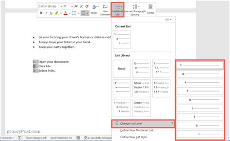 How To Change List Level In Word. Web if you click the multilevel list button while the insertion point is in a numbered heading (heading 1, preferably),.